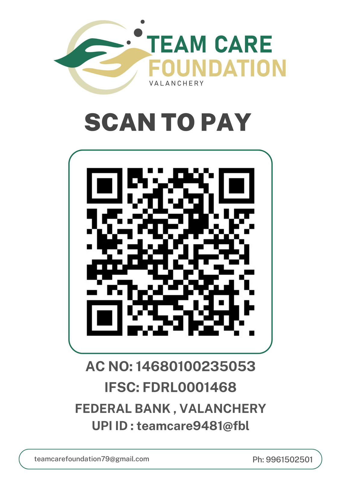 You can support Team Care Foundation directly using the UPI QR code or bank details below.”